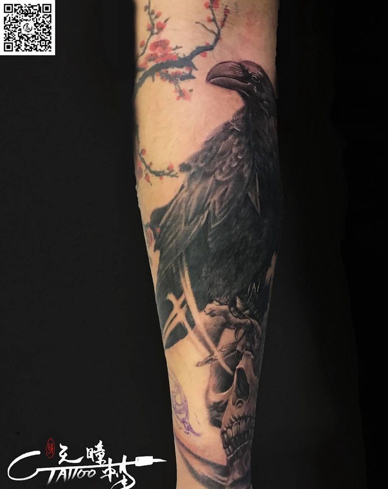 当前位置: 首页 >陕西省西安市纹身店-天瞳刺青处纹身图案>遮盖作品乌鸦纹身图片