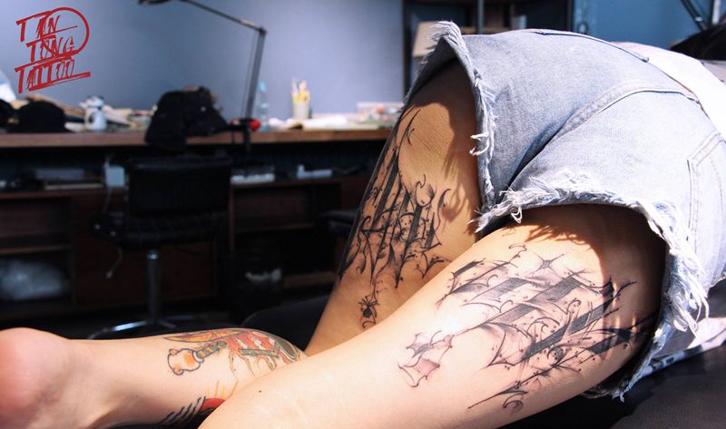 当前位置: 首页 >陕西省西安市纹身店-天瞳刺青处纹身图案>花题字纹身图片_臀部腿部花体字性感花题字美女纹身图案