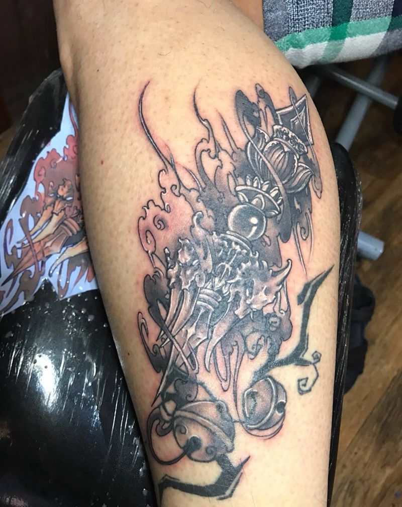 降魔杵纹身图片_成品腿部传统宗教西安纹身图案