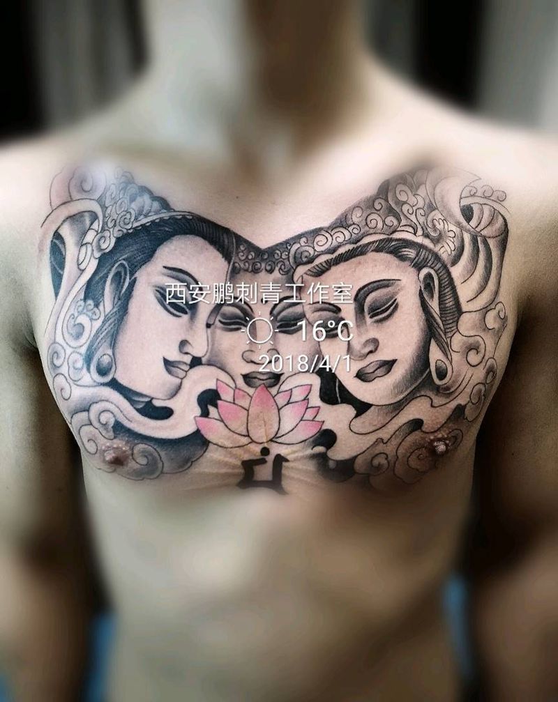 三面佛纹身图片_新传统纹身图案