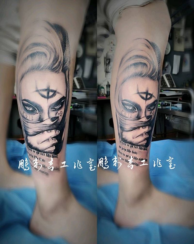 当前位置: 首页 >陕西省西安市纹身店-TATTOO HONE纹身工作室纹身图案>写实纹身图片_腿部纹身图案