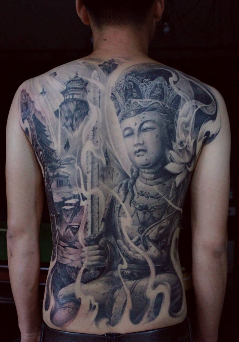 当前位置: 首页 >陕西省西安市纹身店-留白刺青纹身图案>石裂虚空藏菩萨纹身图片_成品背部传统写实人物宗教西安义刺青纹身图案