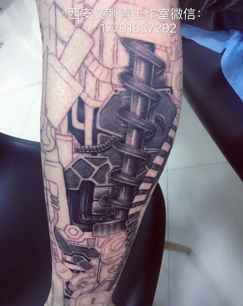 当前位置: 首页 >陕西省西安市纹身店-留白刺青纹身图案>机械小腿未完成纹身图片_原创腿部写实纹身图案