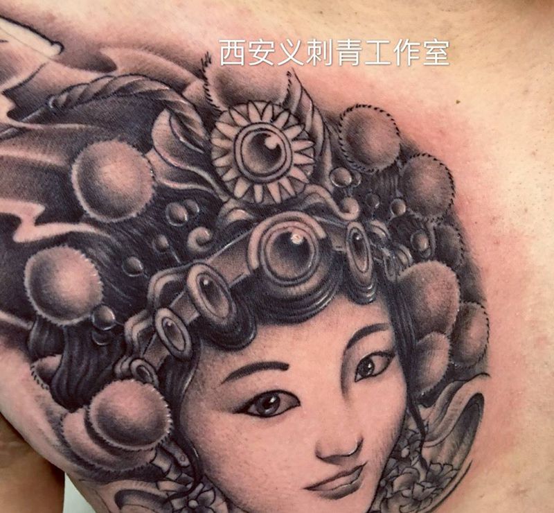 原创小半甲纹身图片_成品原创人物胸部手臂习俗传统纹身图案