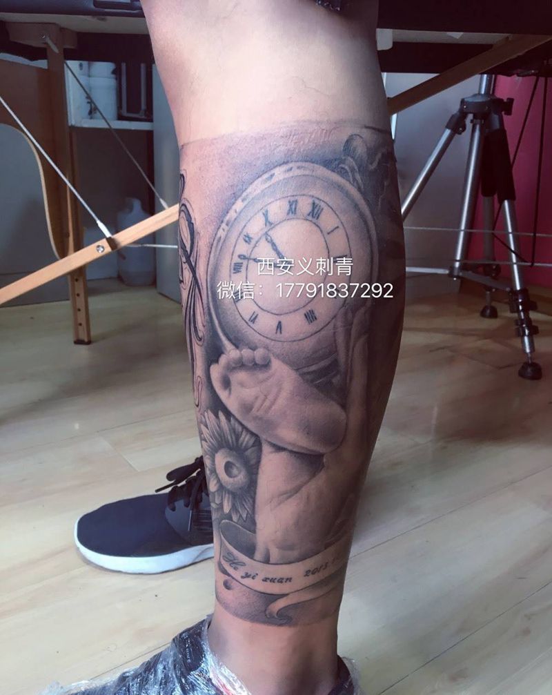 欧美风格包小腿纹身图片_原创写实欧美腿部成品纹身图案