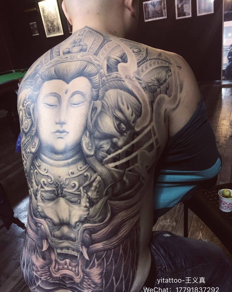 当前位置: 首页 >陕西省西安市纹身店-留白刺青纹身图案>虚空藏纹身图片_成品背部传统宗教西安义刺青纹身图案