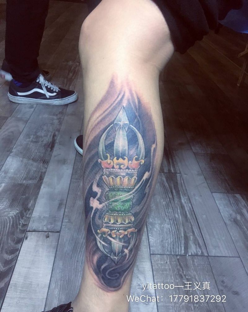 降魔杵纹身图片_成品腿部写实传统静物西安义刺青纹身图案