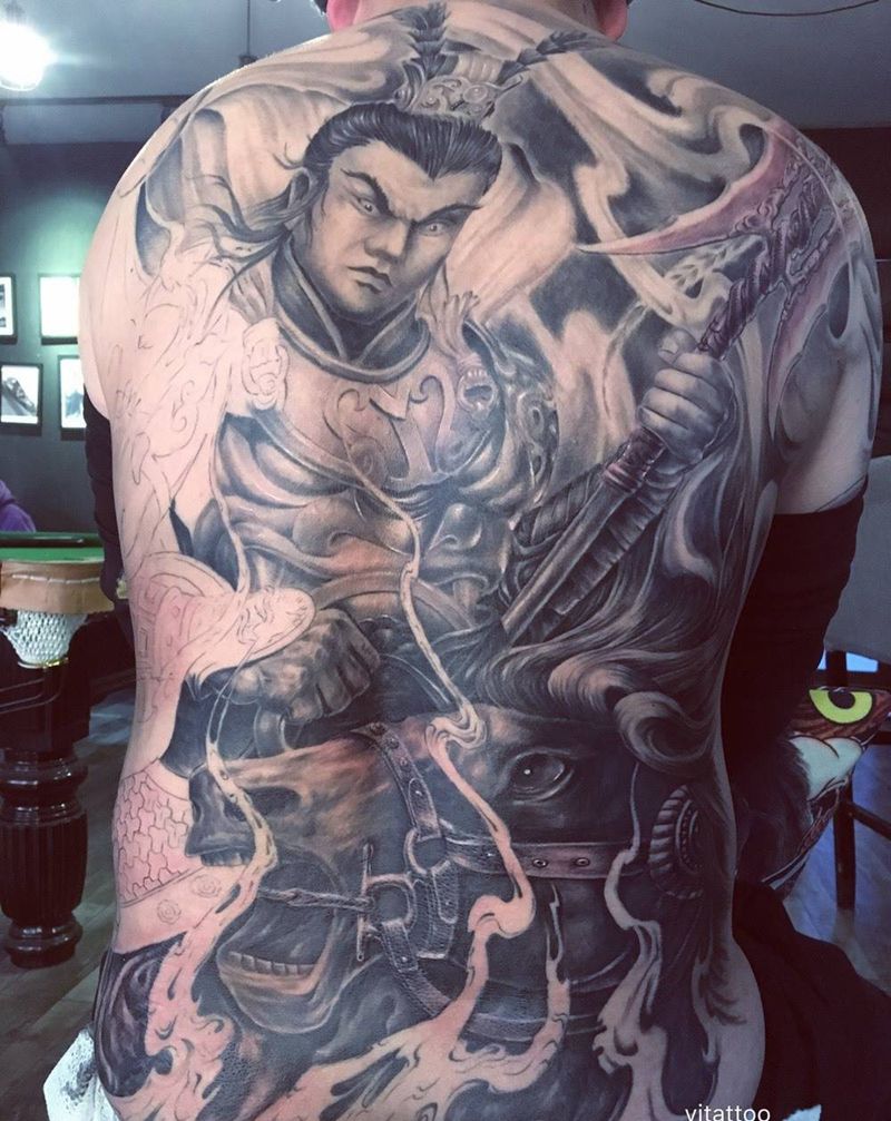 满背吕布纹身图片_人物传统背部西安义刺青纹身图案
