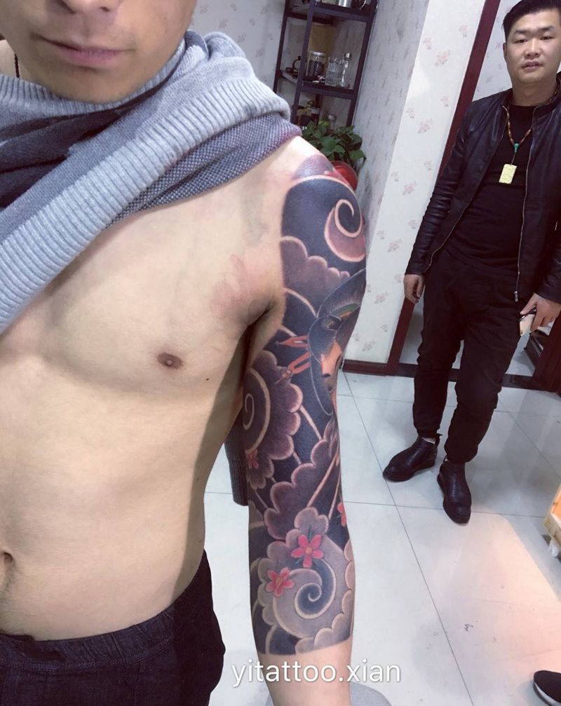 日式生首七分袖纹身图片_成品西安义刺青原创传统手臂宗教鬼神人物纹身图案