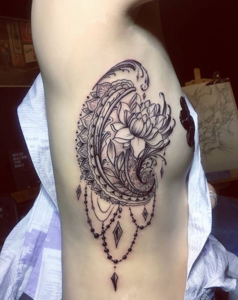 • 女性大花胸纹身_43张霸气漂亮的女性大花胸纹身图案作品
