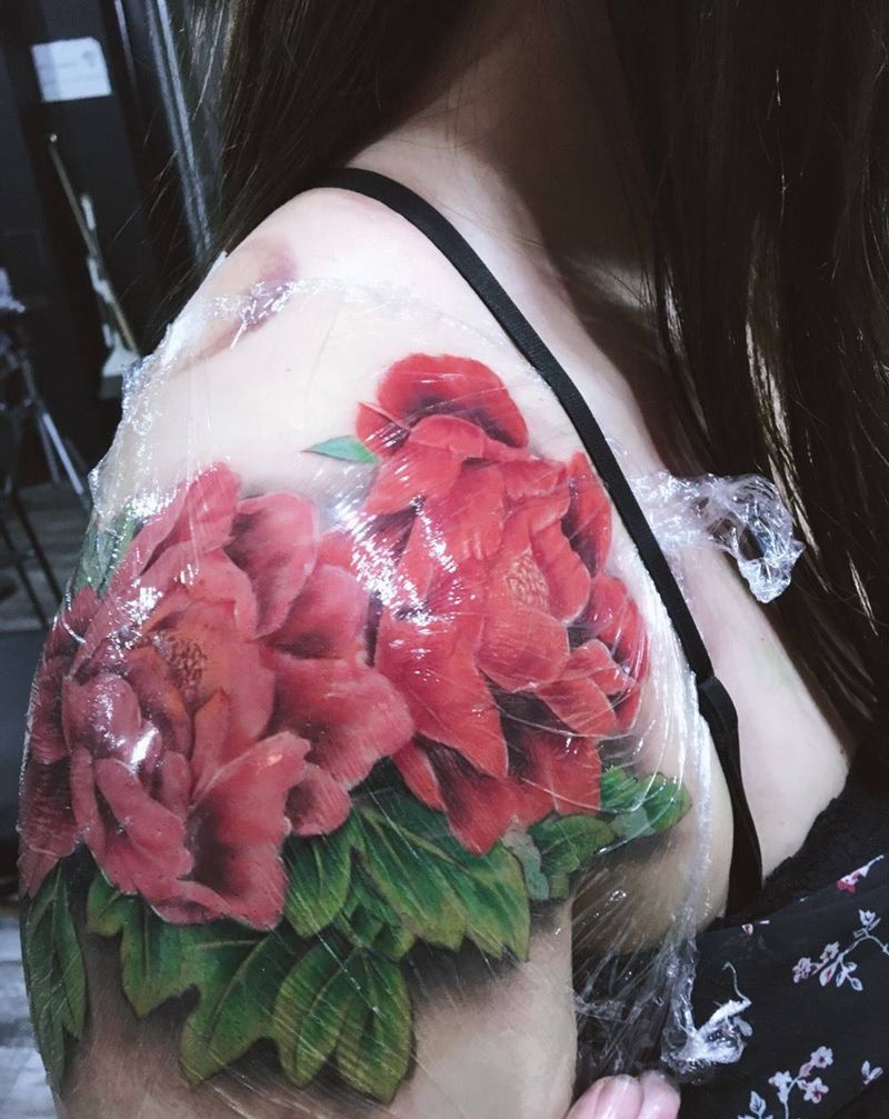 当前位置: 首页 >陕西省西安市纹身店-留白刺青纹身图案>写实牡丹纹身图片_成品手臂写实西安义刺青原创植物纹身图案