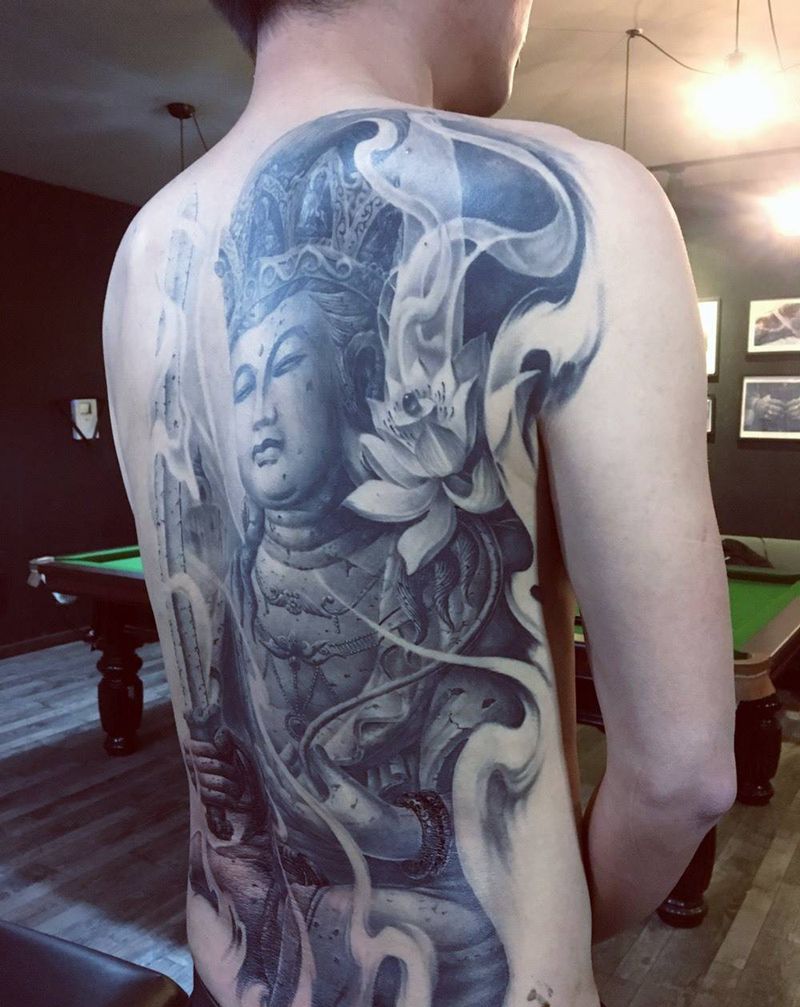 虚空藏纹身图片_西安义刺青宗教传统背部纹身图案