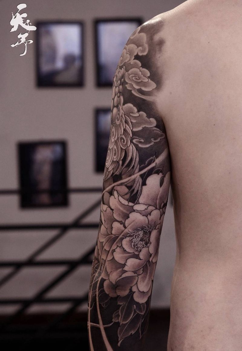 西安天予刺青传统作品纹身图片_新传统唐狮子纹身图案