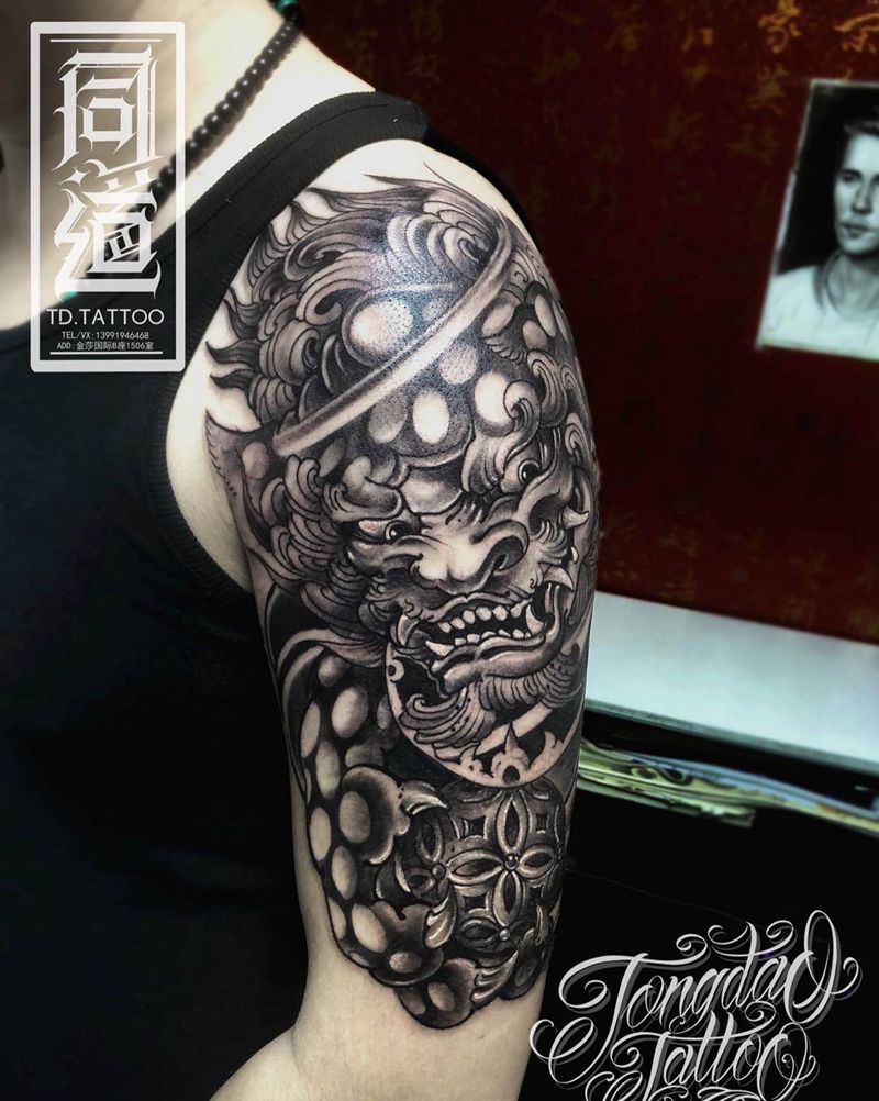 当前位置: 首页 >陕西省西安市纹身店-陕西同道堂文化传播有限公司纹身图案>唐狮子纹身图片_手臂新传统老传统纹身图案