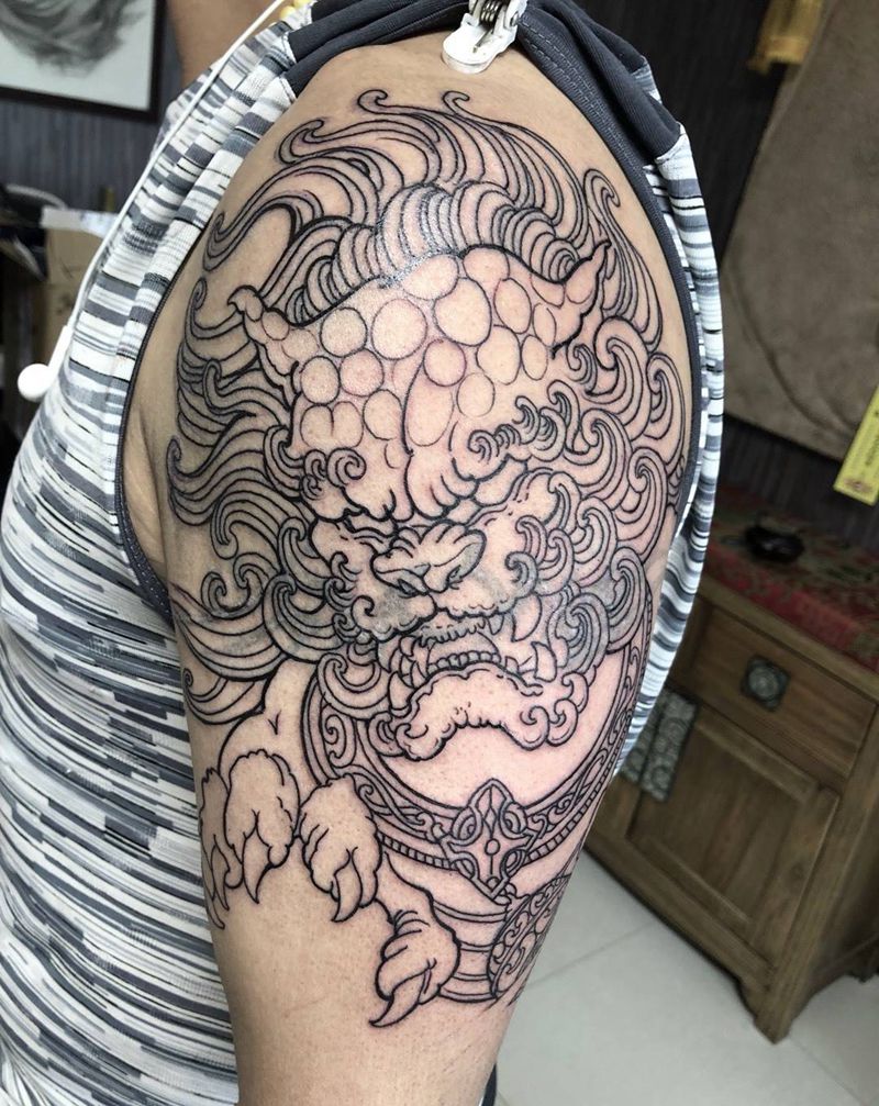 当前位置: 首页 >陕西省西安市纹身店-陕西同道堂文化传播有限公司纹身图案>唐狮子纹身图片_手臂新传统图腾纹身图案