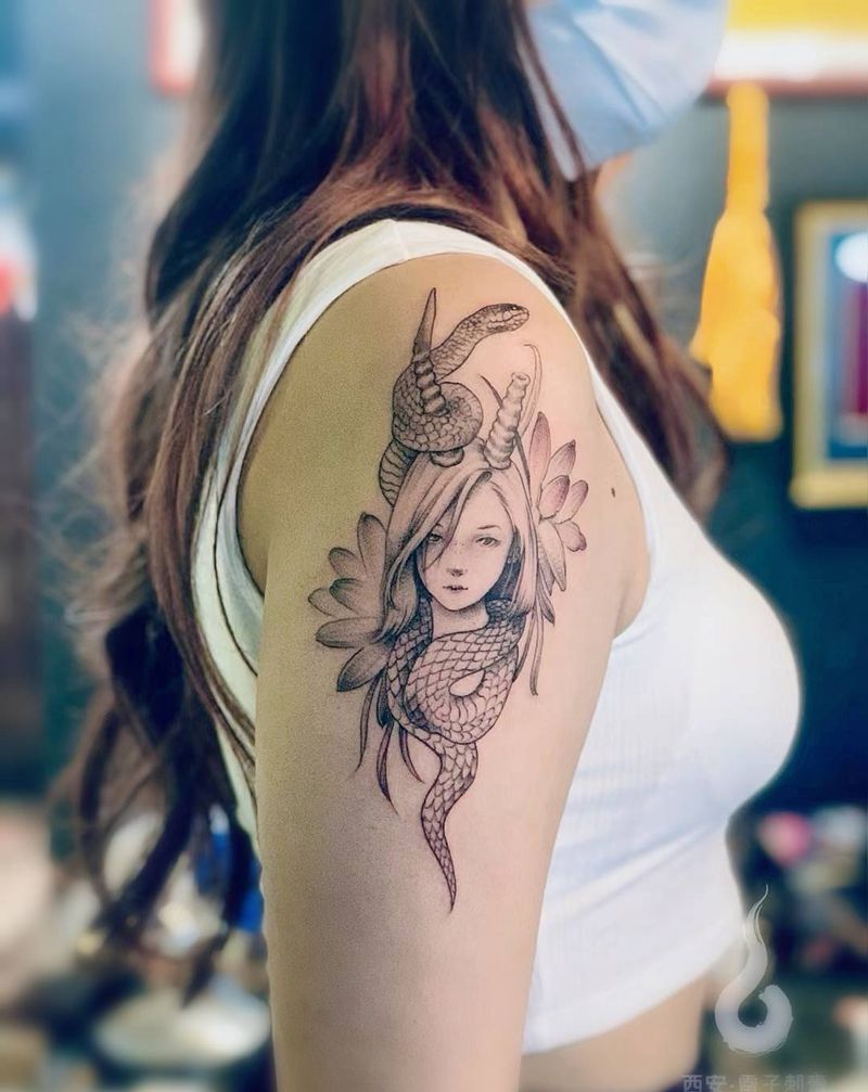 • 纹身吧推荐的披肩图腾半胛纹身图案作品展示