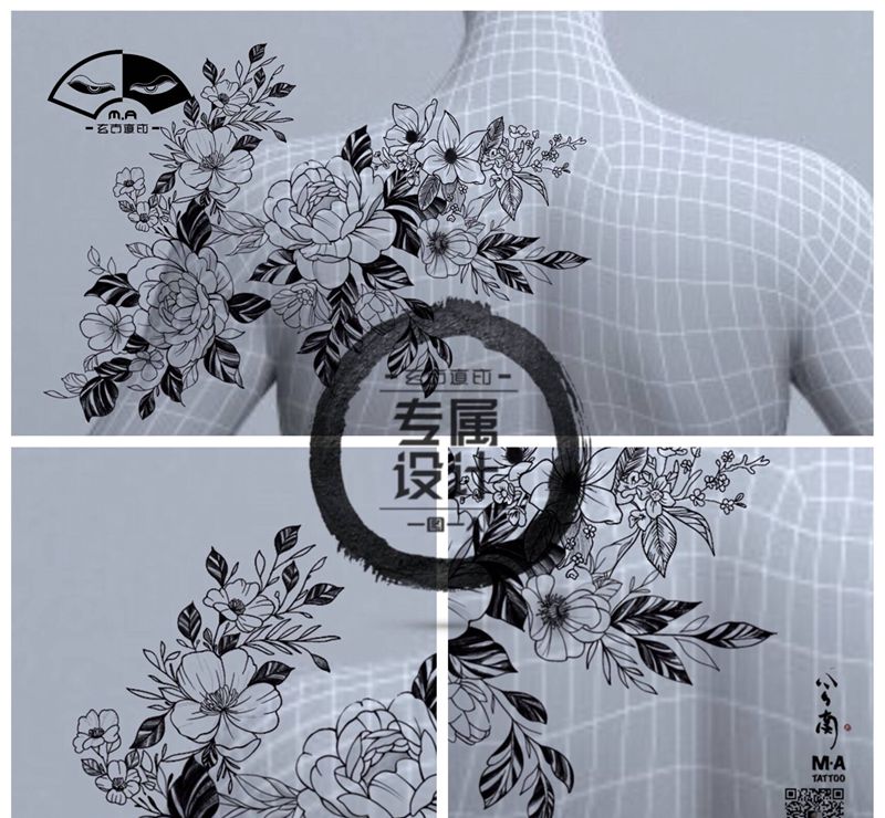 黑灰满背纹身图案
