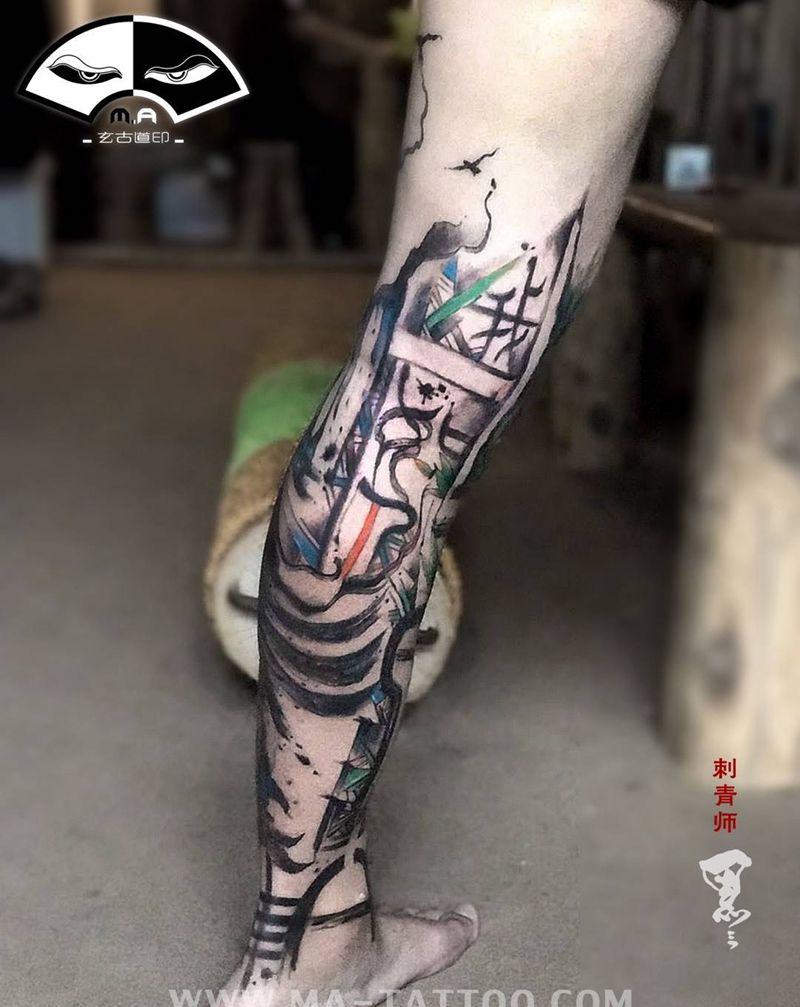 • T网红王老大花腿龙纹身图片_腿部新传统纹身图案
