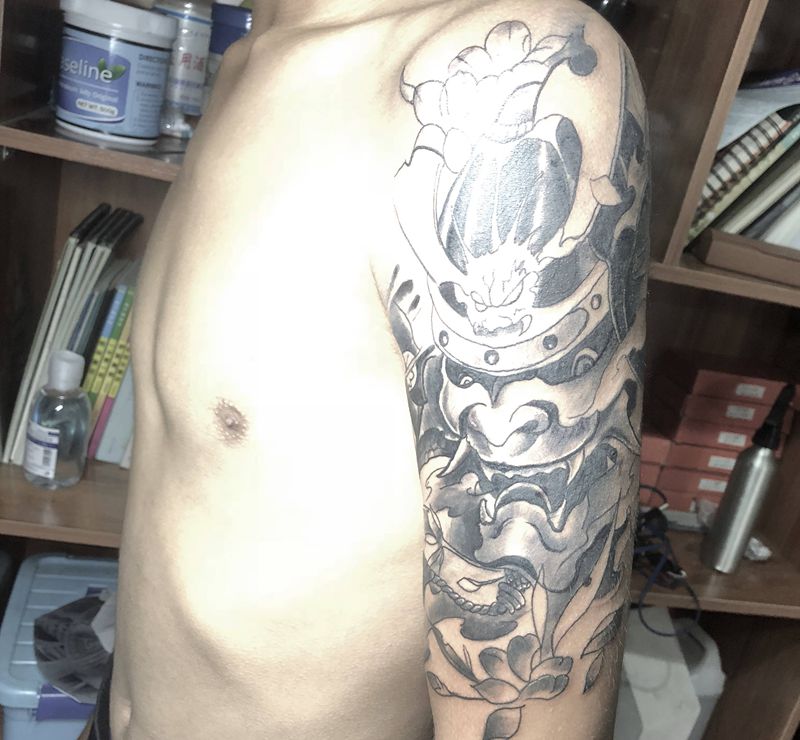 当前位置: 首页 >陕西省西安市纹身店-西安和舟刺青店纹身图案>鬼武士纹身图片_手臂腿部新传统鬼武士纹身图案