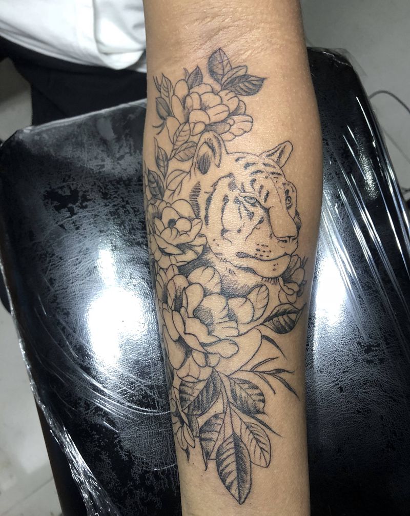当前位置: 首页 >陕西省西安市纹身店-西安和舟刺青店纹身图案>小脑斧纹身图片_手臂腿部点刺几何老虎纹身图案