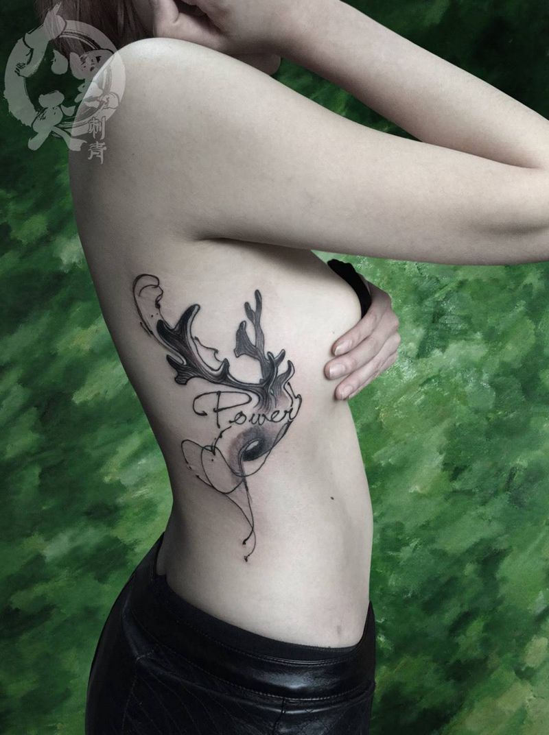 当前位置: 首页 >陕西省西安市纹身店-西安大黑天刺青纹身图案>power鹿飞了~纹身图片_胸部腰部腹部传统国画动物原创字符纹身图案