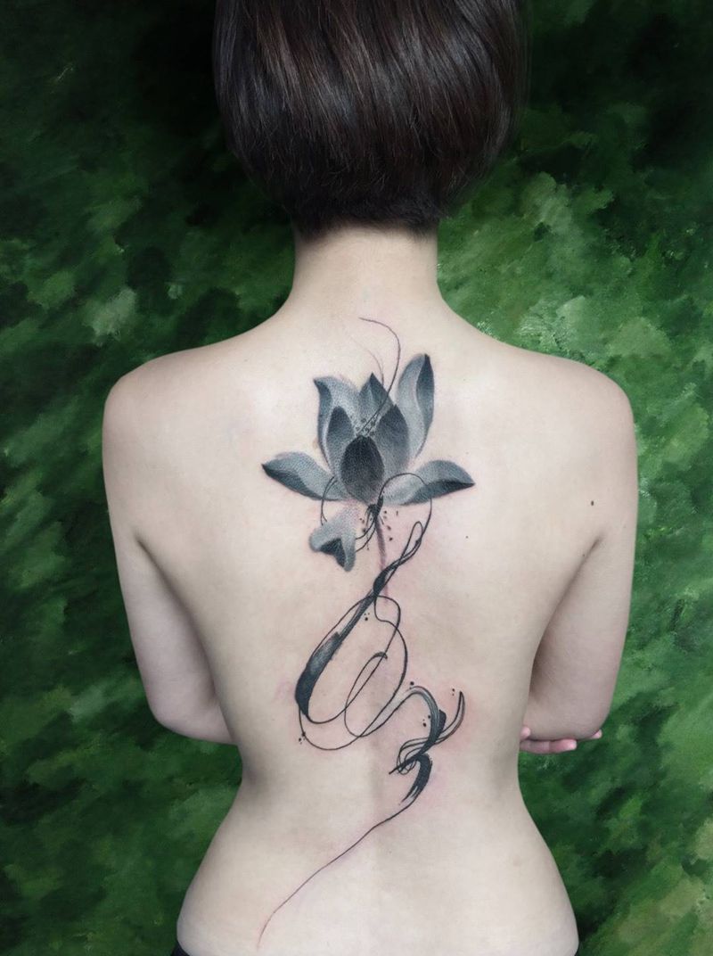 当前位置: 首页 >陕西省西安市纹身店-西安大黑天刺青纹身图案>莲纹身图片_原创植物静物清新国画背部腰部成品纹身图案