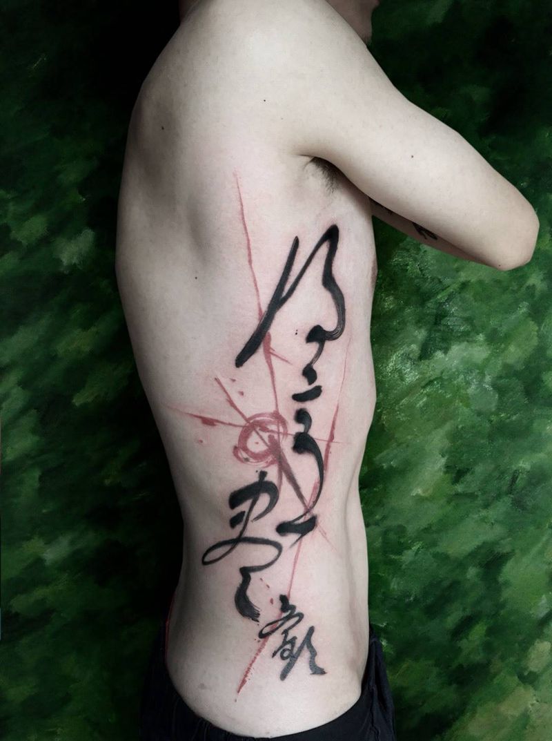 • T关于私处得爱!纹身图片_成品腹部清新字符图腾纹身图案