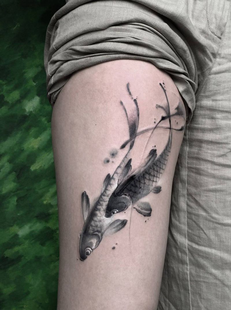 双鱼纹身图片_成品脚部原创动物清新传统植物宗教腿部纹身图案