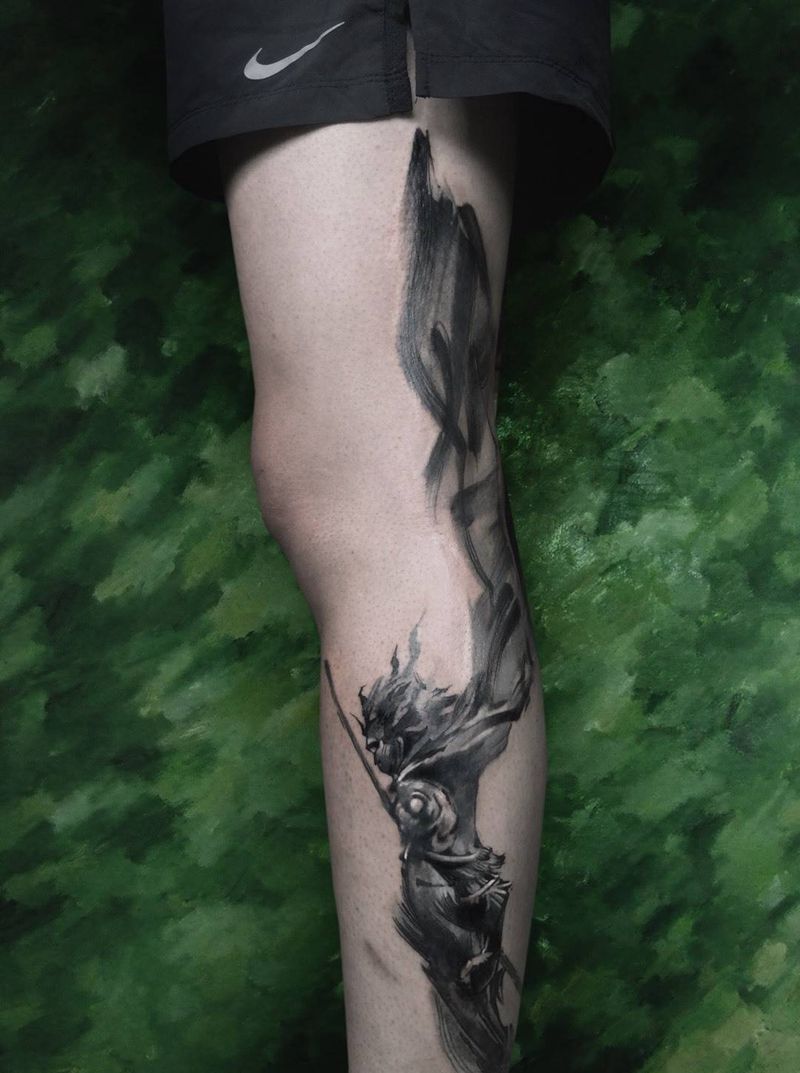 齐天大圣-孙悟空纹身图片_原创人物宗教写实国画传统习俗肖像腿部成品纹身图案