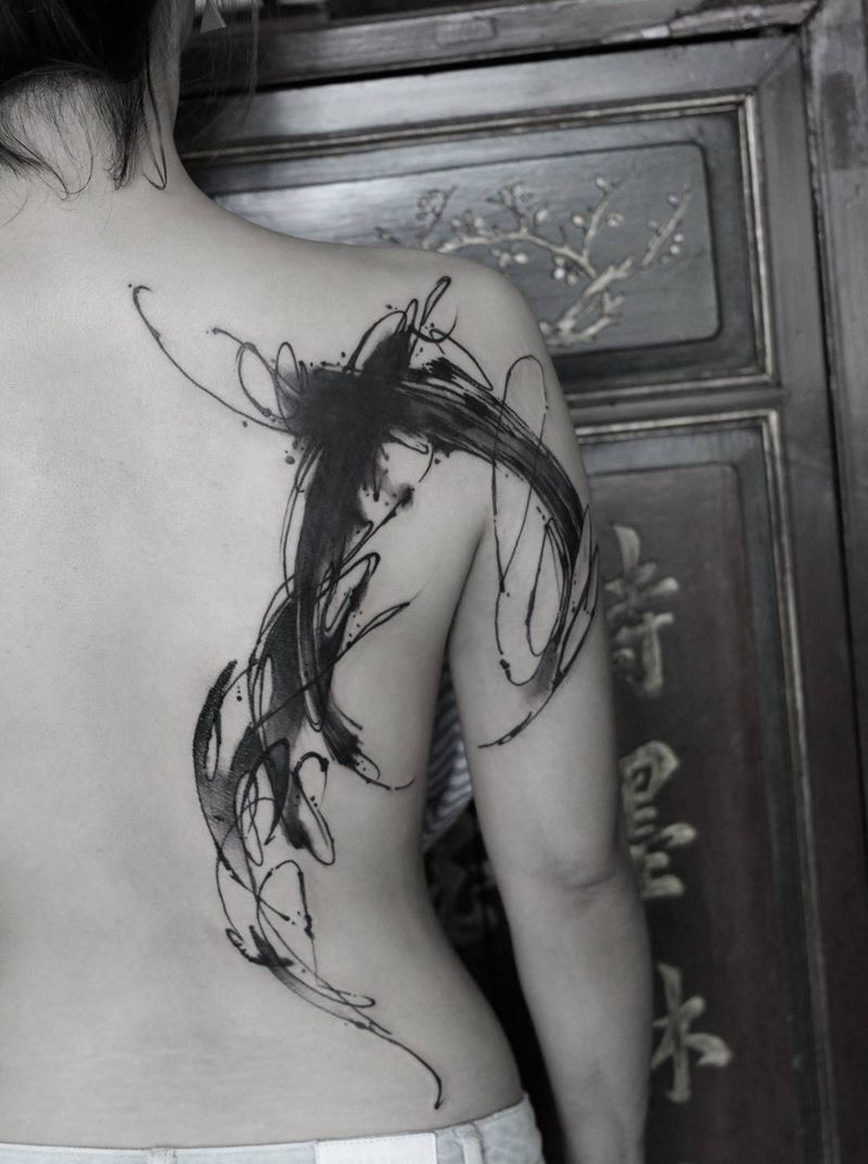 抽象纹身图片_肩部背部水墨水彩纹身图案