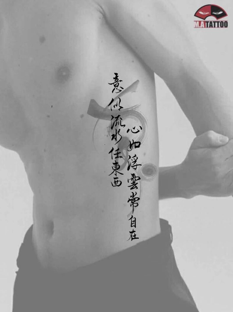 【触•自在】|国风抽象纹身图片_腰部手臂水墨水彩汉字纹身图案