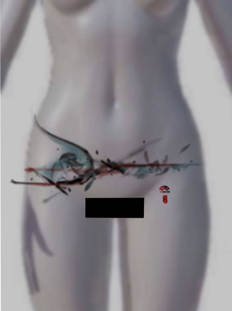 【触•玉兰】|国风抽象纹身图片_腹部腰部水墨水彩兰花纹身图案