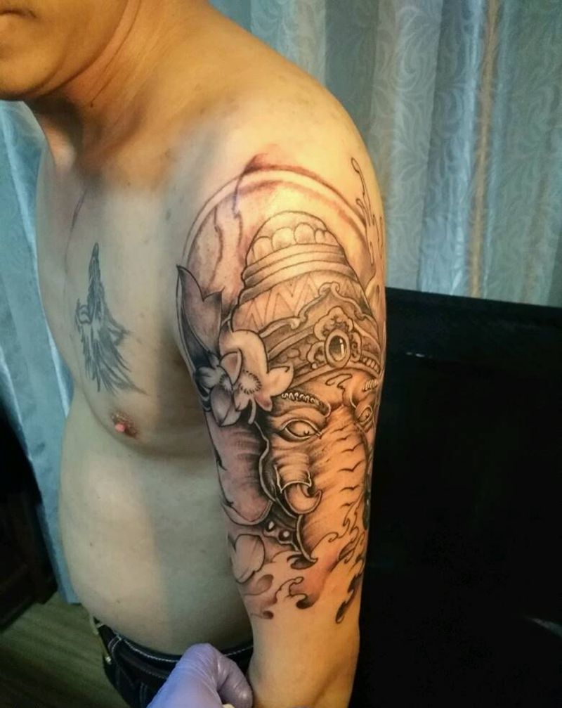 当前位置: 首页 >陕西省西安市纹身店-西安禅门刺青纹身图案>大臂象神纹身图片