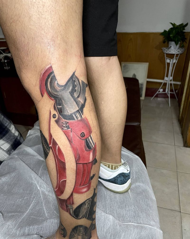 当前位置: 首页 >陕西省咸阳市纹身店-文心雕龙纹身图案>机械腿纹身图片_腿部欧美写实机械纹身图案