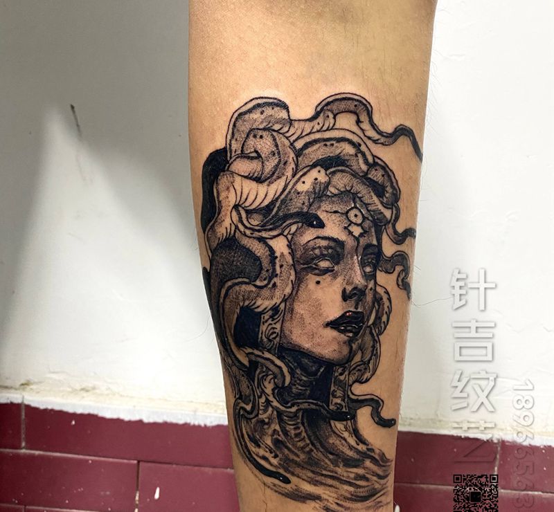 当前位置: 首页 >陕西省咸阳市纹身店-文心雕龙纹身图案>美杜莎纹身图片_腿部点刺纹身图案