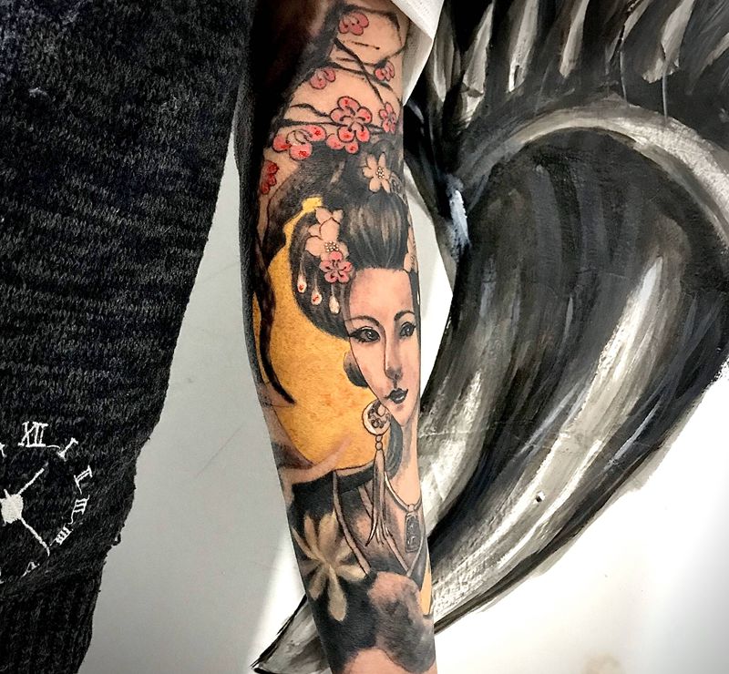 艺妓纹身图片_手臂新传统艺妓小臂纹身图案