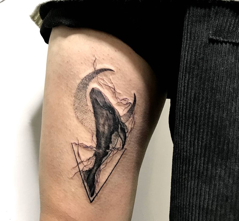 鲸鱼纹身图片_腿部鲸鱼鱼纹身图案