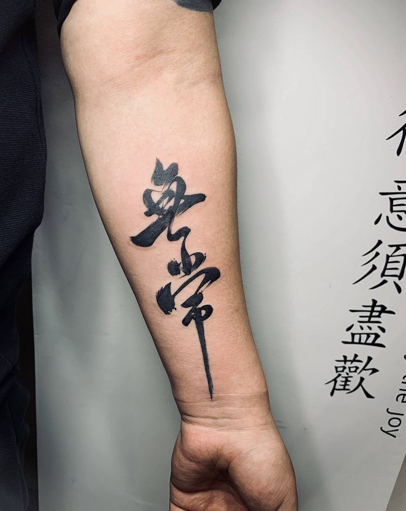 当前位置: 首页 >陕西省宝鸡市纹身店-宝鸡久予刺青工作室纹身图案>书法 无常纹身图片_手臂水墨纹身图案