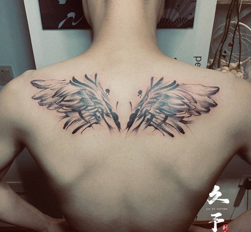 当前位置: 首页 >陕西省宝鸡市纹身店-宝鸡久予刺青工作室纹身图案>水墨翅膀纹身图片_背部水墨纹身图案