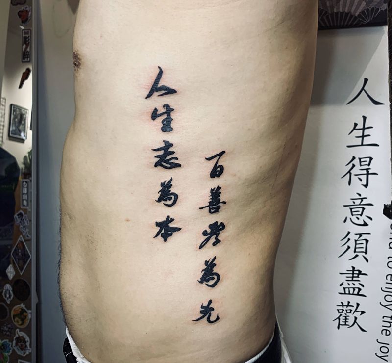 当前位置: 首页 >陕西省宝鸡市纹身店-宝鸡久予刺青工作室纹身图案>人生志为本,百善孝为先纹身图片_腰部纹身图案