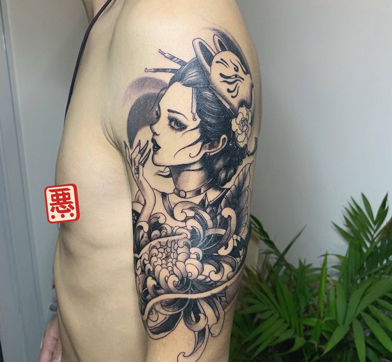 当前位置: 首页 >陕西省宝鸡市纹身店-宝鸡久予刺青工作室纹身图案>艺妓纹身图片_手臂新传统纹身图案