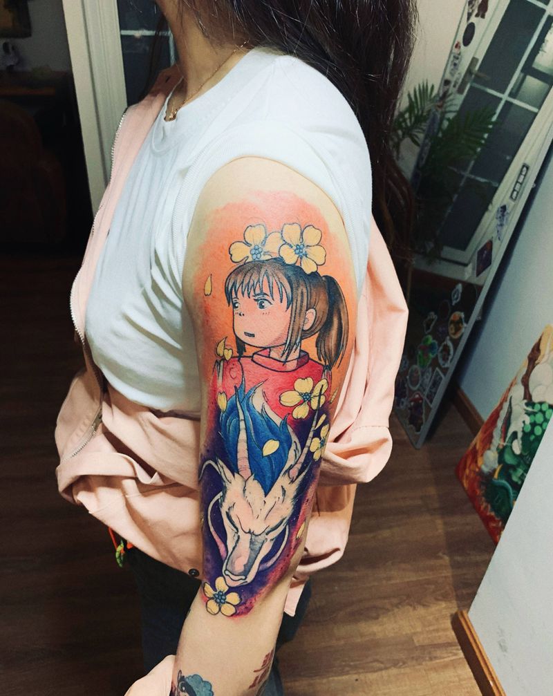 当前位置: 首页 >陕西省宝鸡市纹身店-宝鸡久予刺青工作室纹身图案>千与千寻纹身图片_手臂New School千与千寻纹身图案