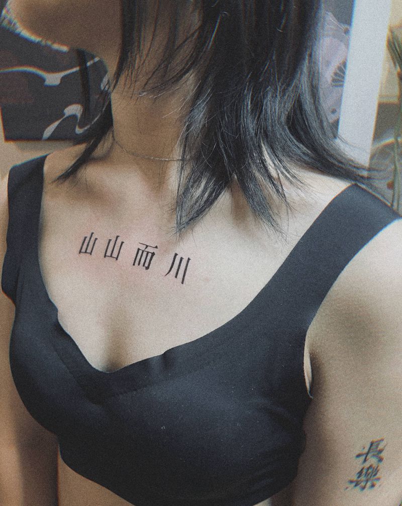 人山海海纹身图片_胸部字纹身图案