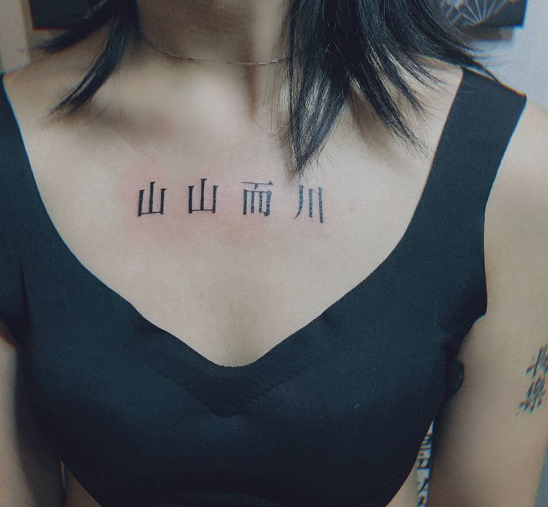 人山海海纹身图片_胸部字纹身图案