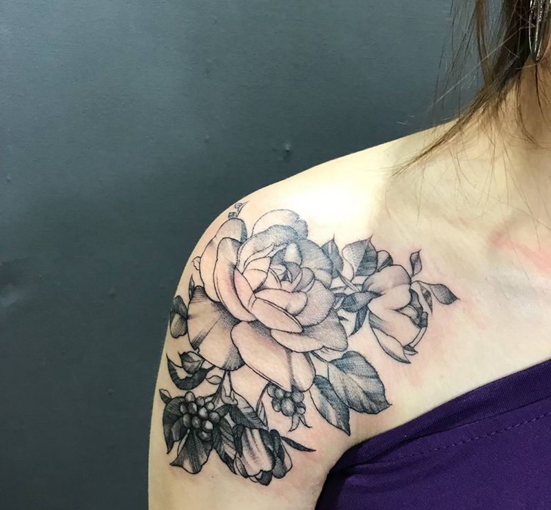 • 女性大花胸纹身_43张霸气漂亮的女性大花胸纹身图案作品