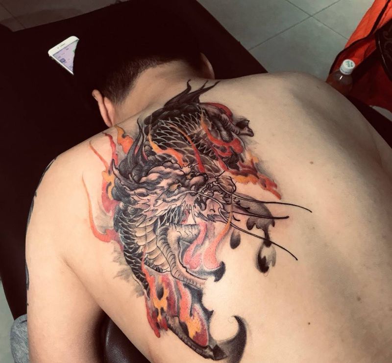 • T云龙九郎纹身图片_背部老传统云龙九郎纹身图案