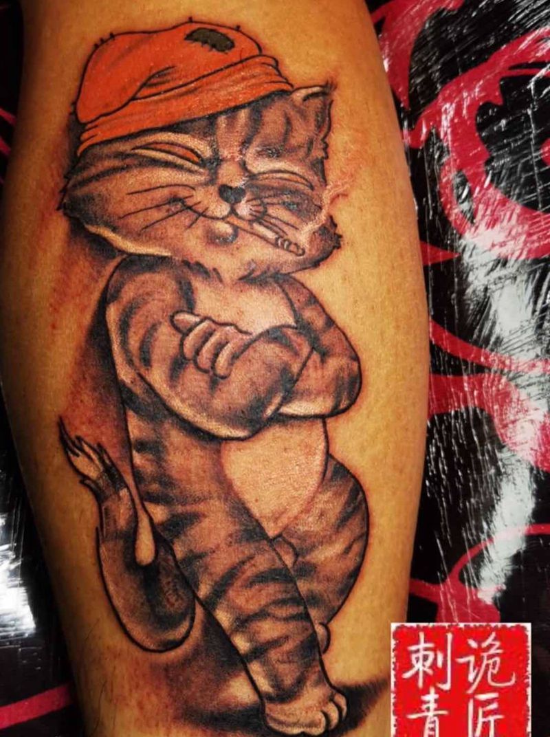 屌猫纹身图片_腿部纹身图案