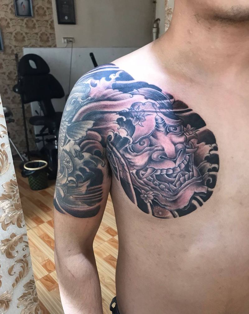 当前位置: 首页 >陕西省宝鸡市纹身店-文博刺青工作室纹身图案>半甲纹身图片_胸部新传统般若纹身图案