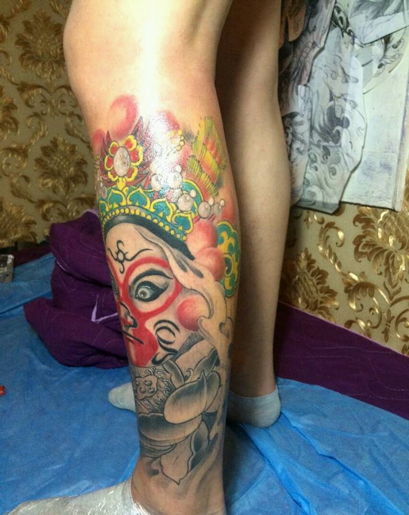 • T网红王老大花腿龙纹身图片_腿部新传统纹身图案