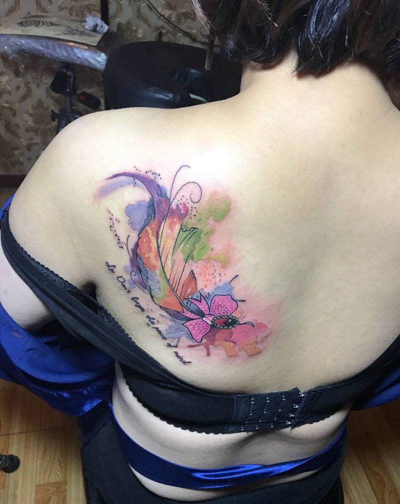 当前位置: 首页 >陕西省宝鸡市纹身店-文博刺青工作室纹身图案>水彩羽毛纹身图片